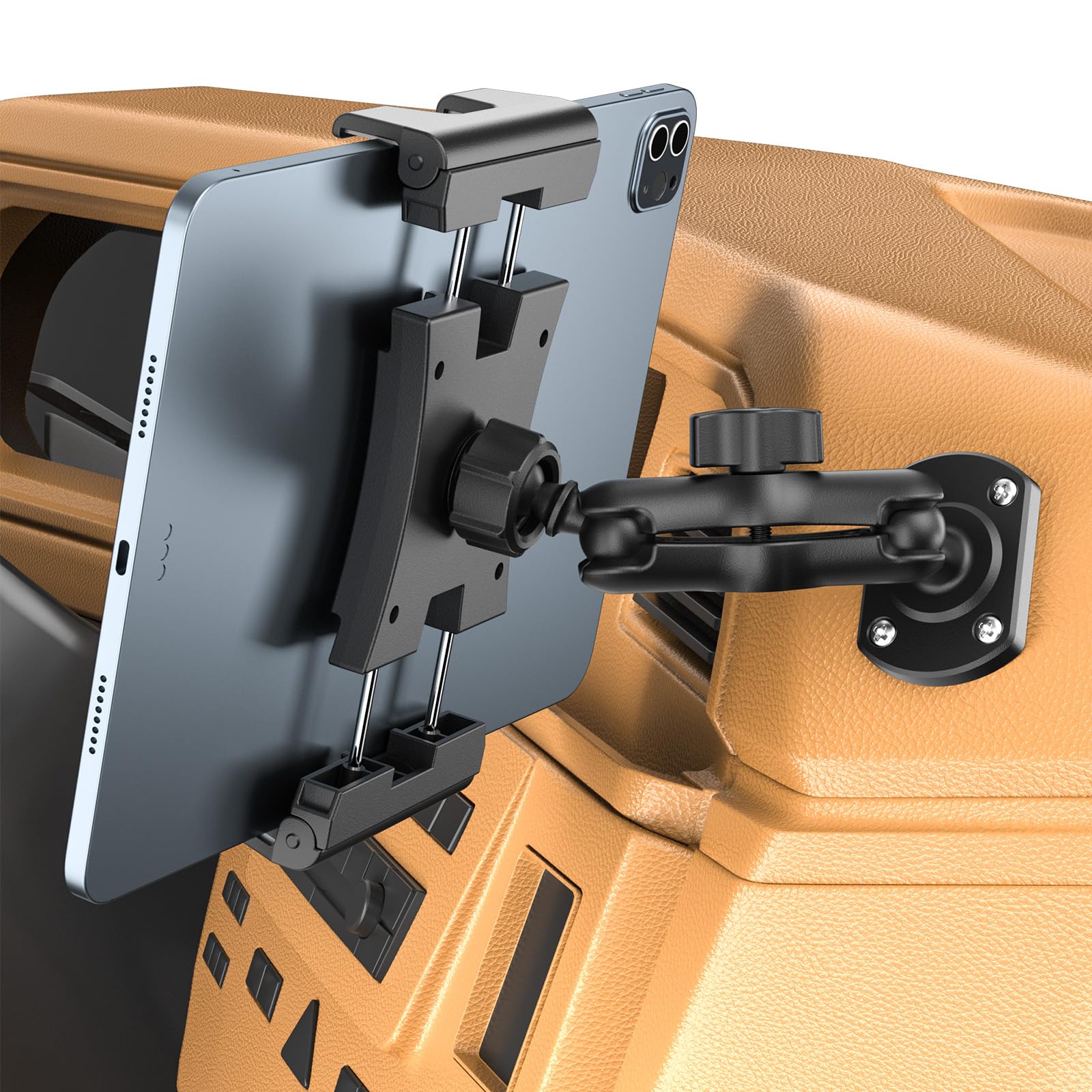 - 【Multi-Scenario Application】The ipad car holder Designed for demanding environments. Suitable for vehicles like trucks and construction machinery, it can also be securely mounted on any flat surface, including walls, desks, and kitchen counters. It’s ideal for factories, warehouses, kitchens, gyms, control rooms, and more.