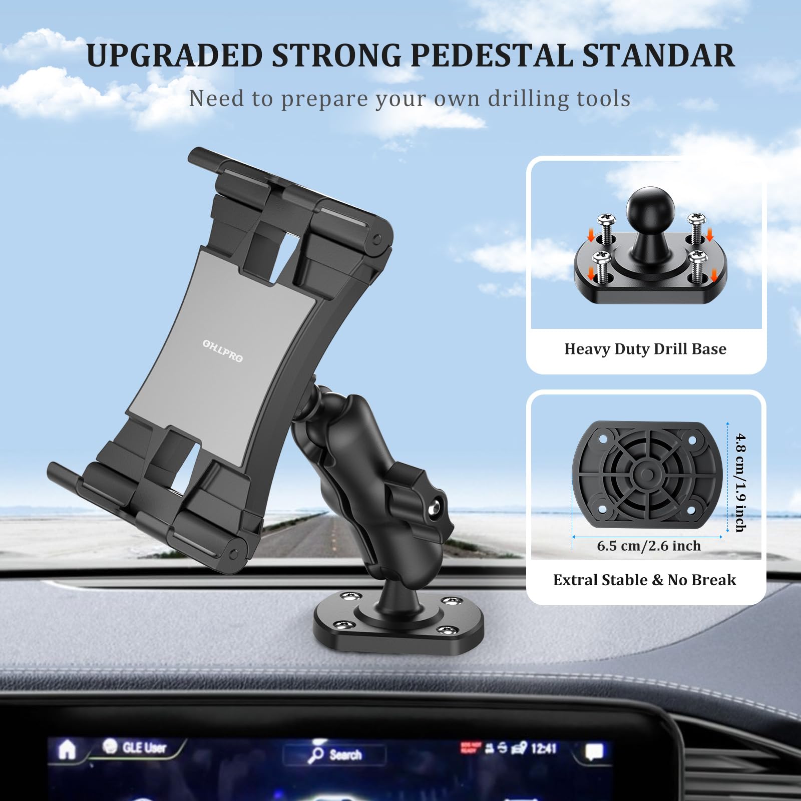 OHLPRO Tablet Holder for Car & Truck Dashboard Heavy Duty iPad Mount with Upgrade Double Spring Clamp & Drill Base 360° Rotating Arm