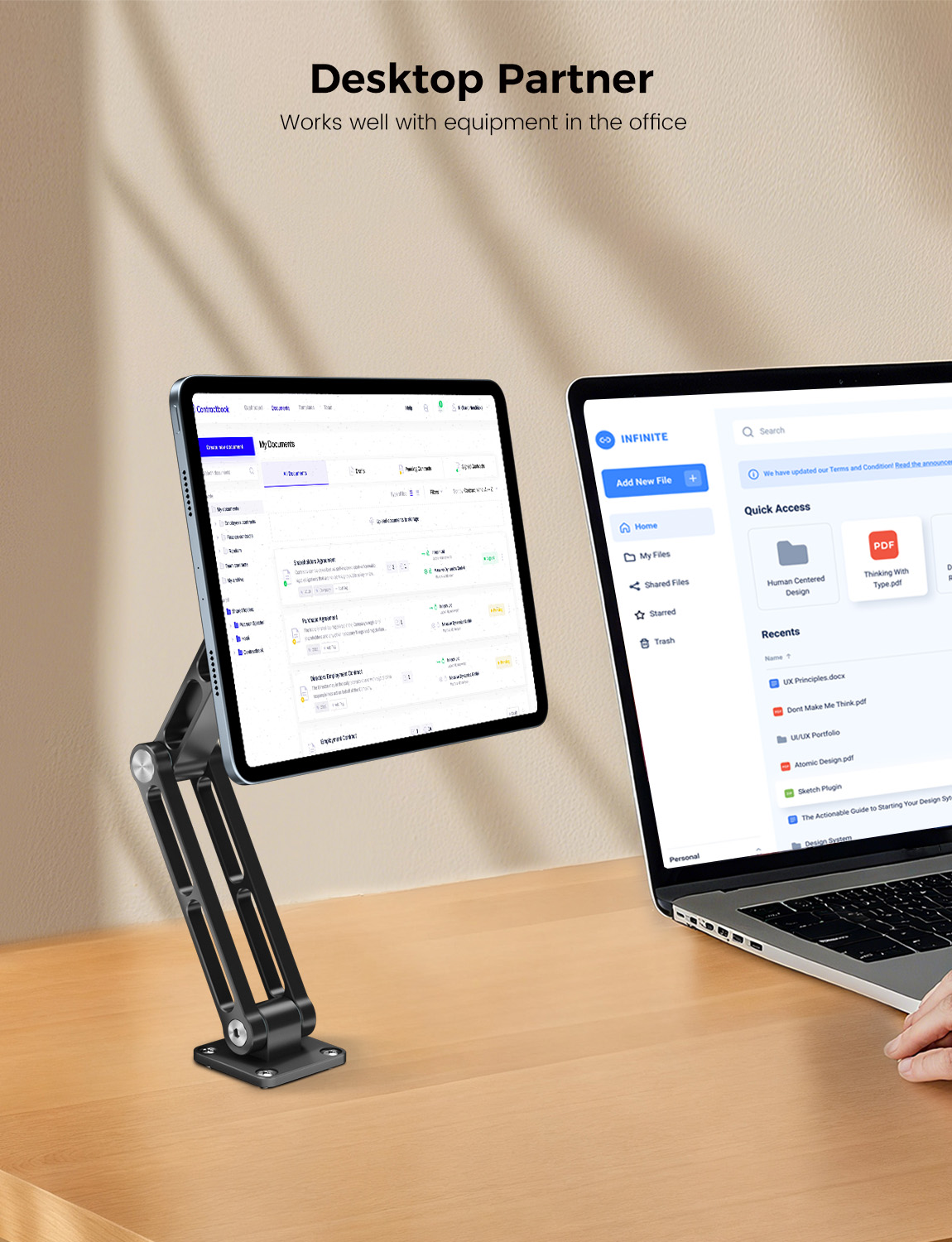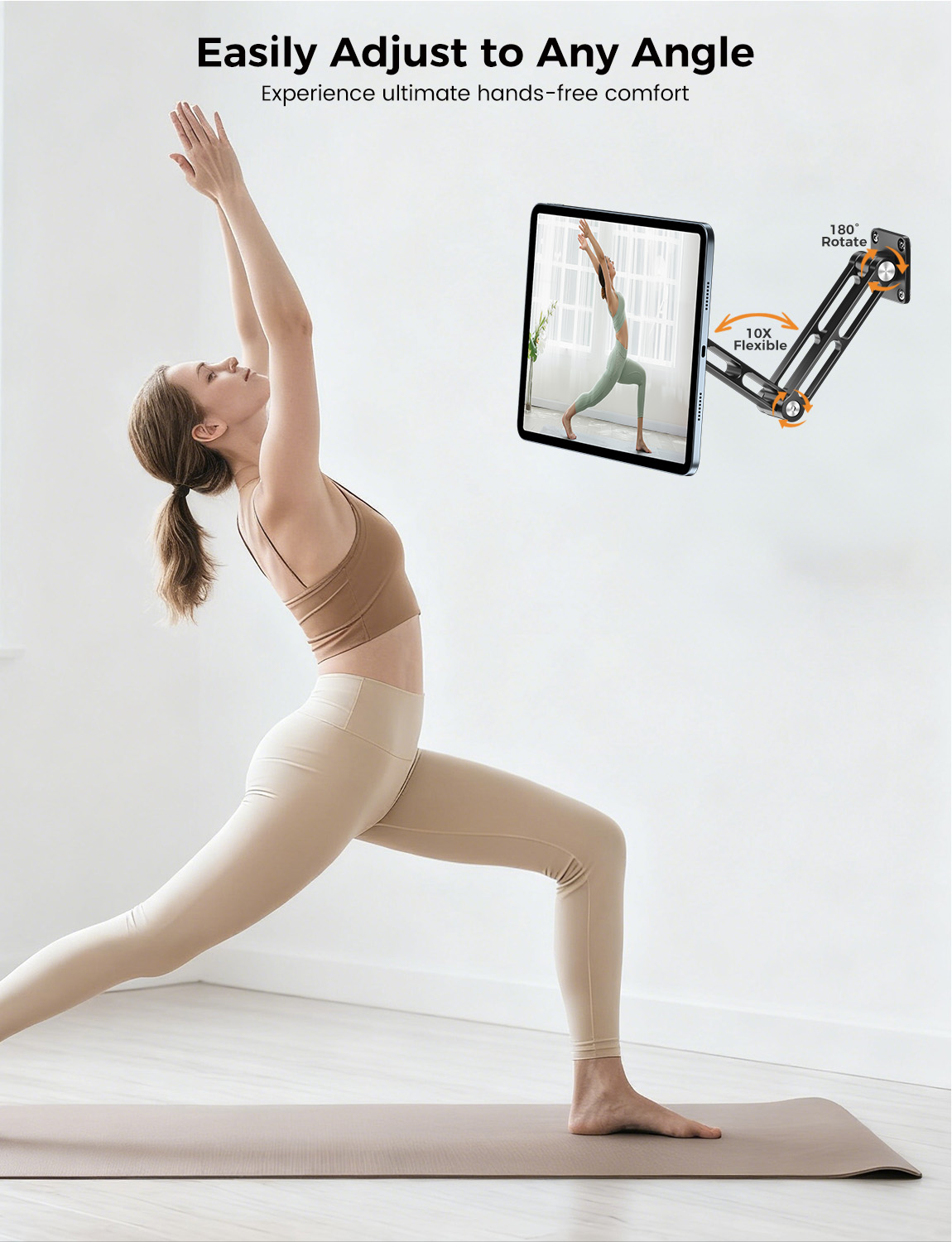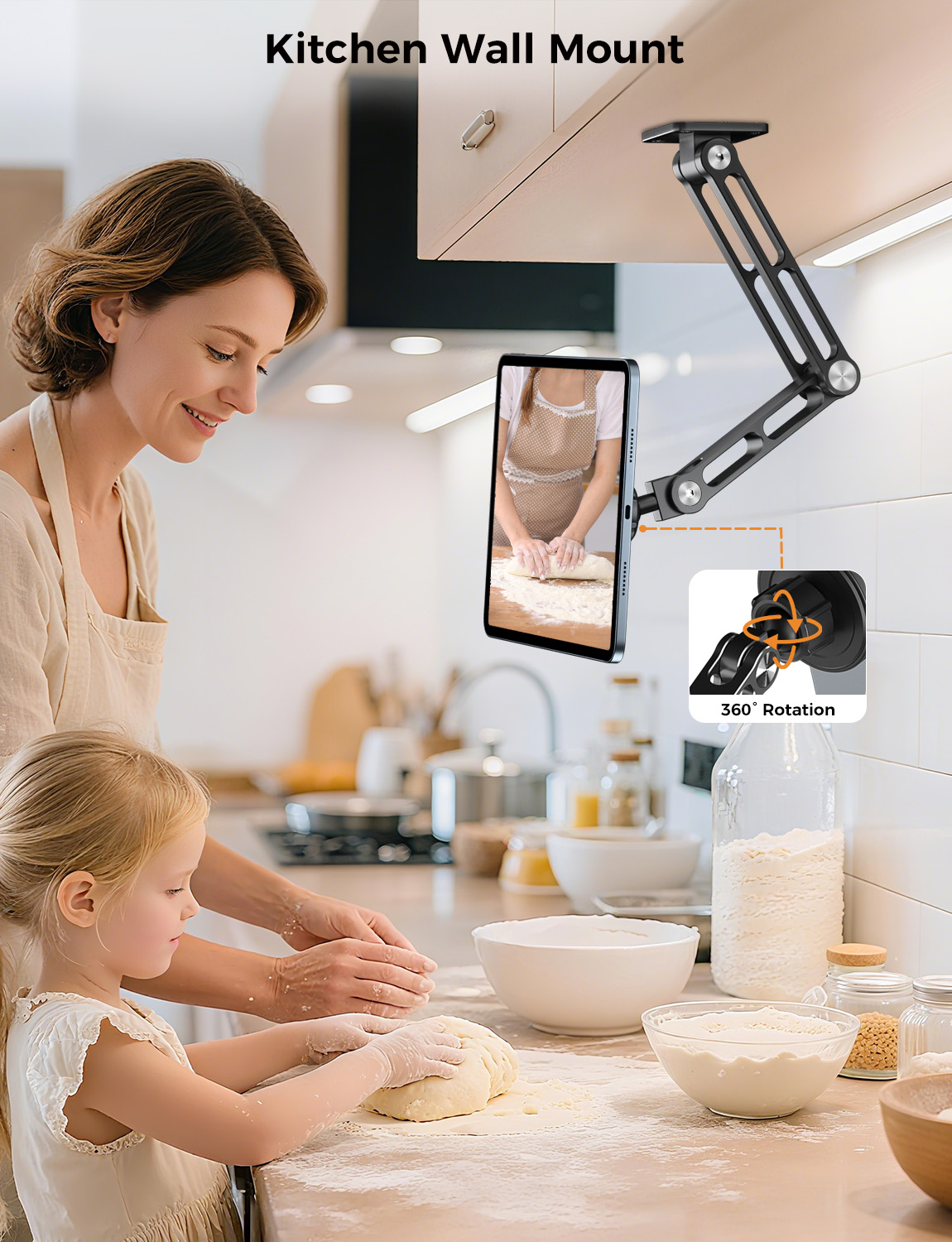 • 【Durable and Easy to Install】This tablet wall mount is crafted from aircraft-grade aluminum alloy, combining lightweight construction with a sturdy structure. Compared to standard plastic iPad wall mount, it’s more wear- and corrosion-resistant, and boasts a strong load-bearing capacity, ensuring long-term stability and reliability. It also comes with a sturdy mounting base that adapts to any wall surface and assembles quickly and easily, creating a neat and organized space.