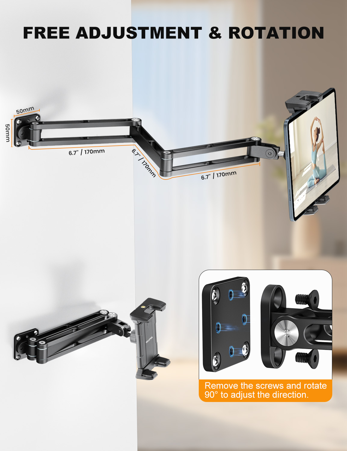 OHLPRO Heavy-Duty Aluminum Tablet Wall Mount – Fully Adjustable 3-Stage Arm for iPad & Galaxy Tab