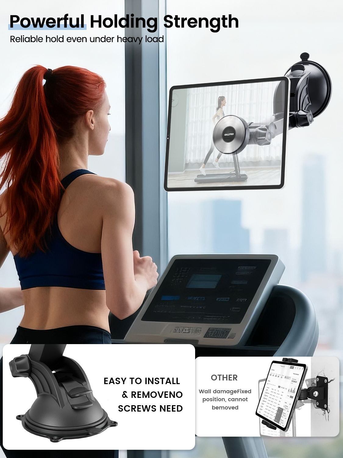 • 【Dual Installation Options for Any Surface】This tablet mount for car dashboard and windshield includes a reusable suction cup base and one adhesive pad. Mount it directly on smooth glass or use the pad for textured dashboards for extra stability — perfect for cars, trucks, bathrooms, gyms, or any indoor surface.