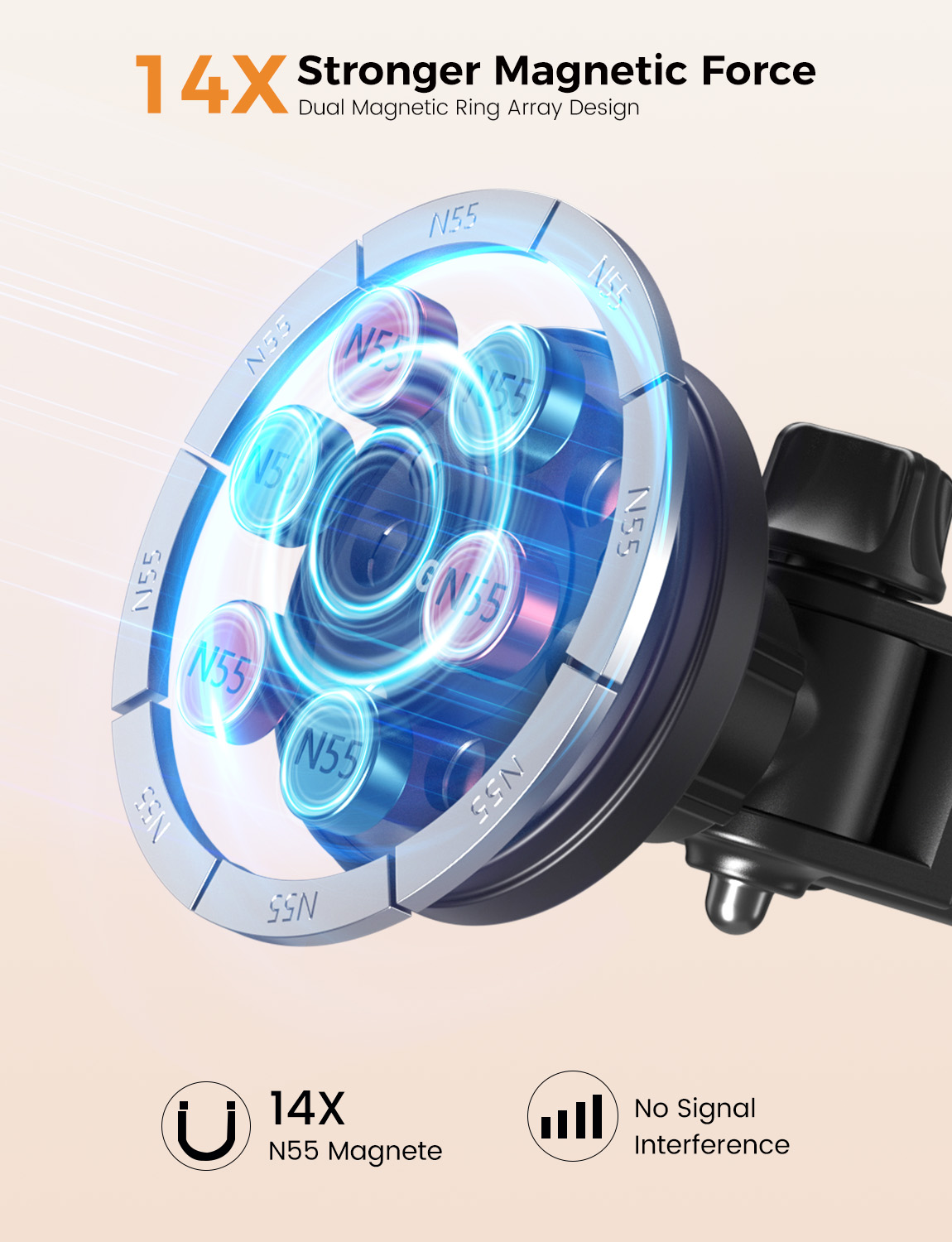 • 【Strong Magnetic Grip, Ultra-Stable Mount】OHLPRO magnetic tablet holder delivers a secure hold for your iPad, tablet, or MagSafe phone while driving. This magnetic tablet car holder features strong N55 magnets that prevent slipping or shaking, providing a reliable iPad car mount for navigation, workouts, or watching videos.