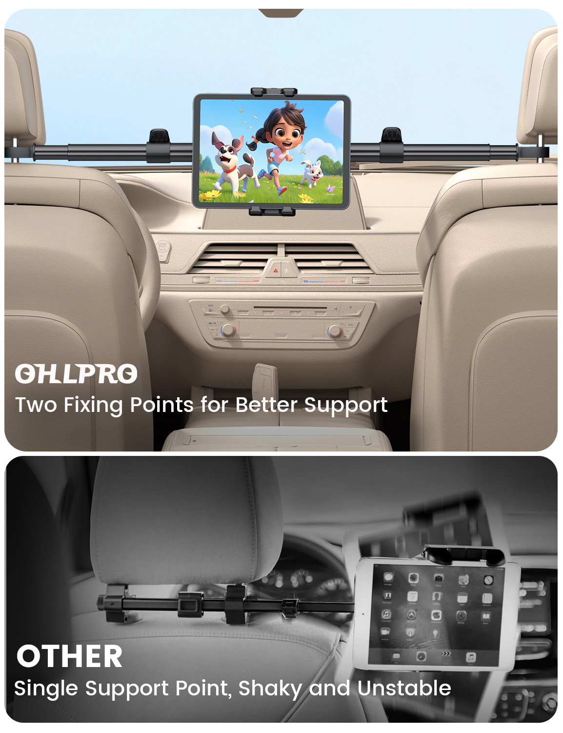 OHLPRO Extended Adjustable Headrest Tablet Mount for Car Back Seat – Road Trip Essential for Kids